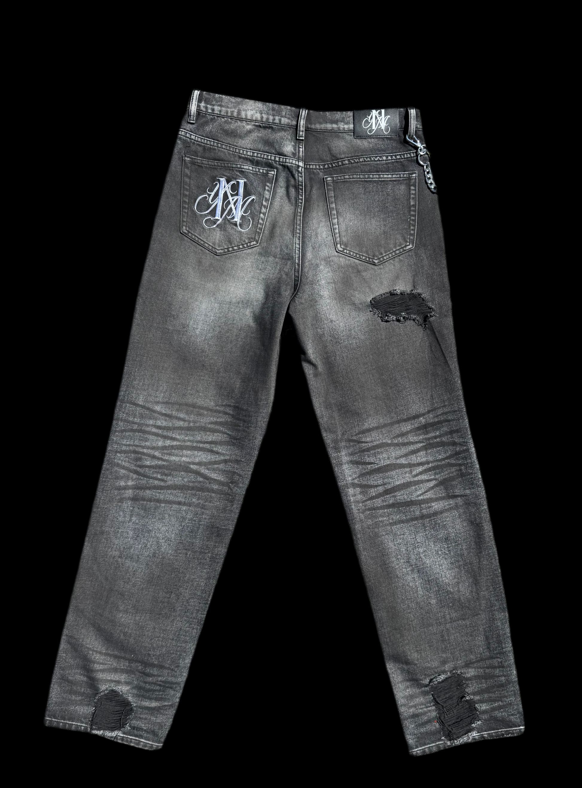 Black Baggy Fit Skater Jeans With Silver Wallet Chain